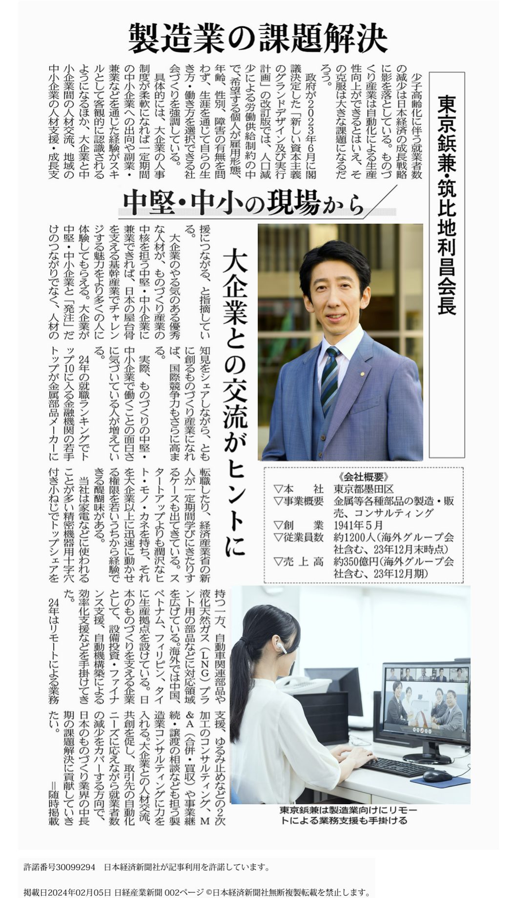#IR#NEWS#PRESSRELEASE - 代表取締役会長の筑比地が、日経産業新聞に掲載されました。